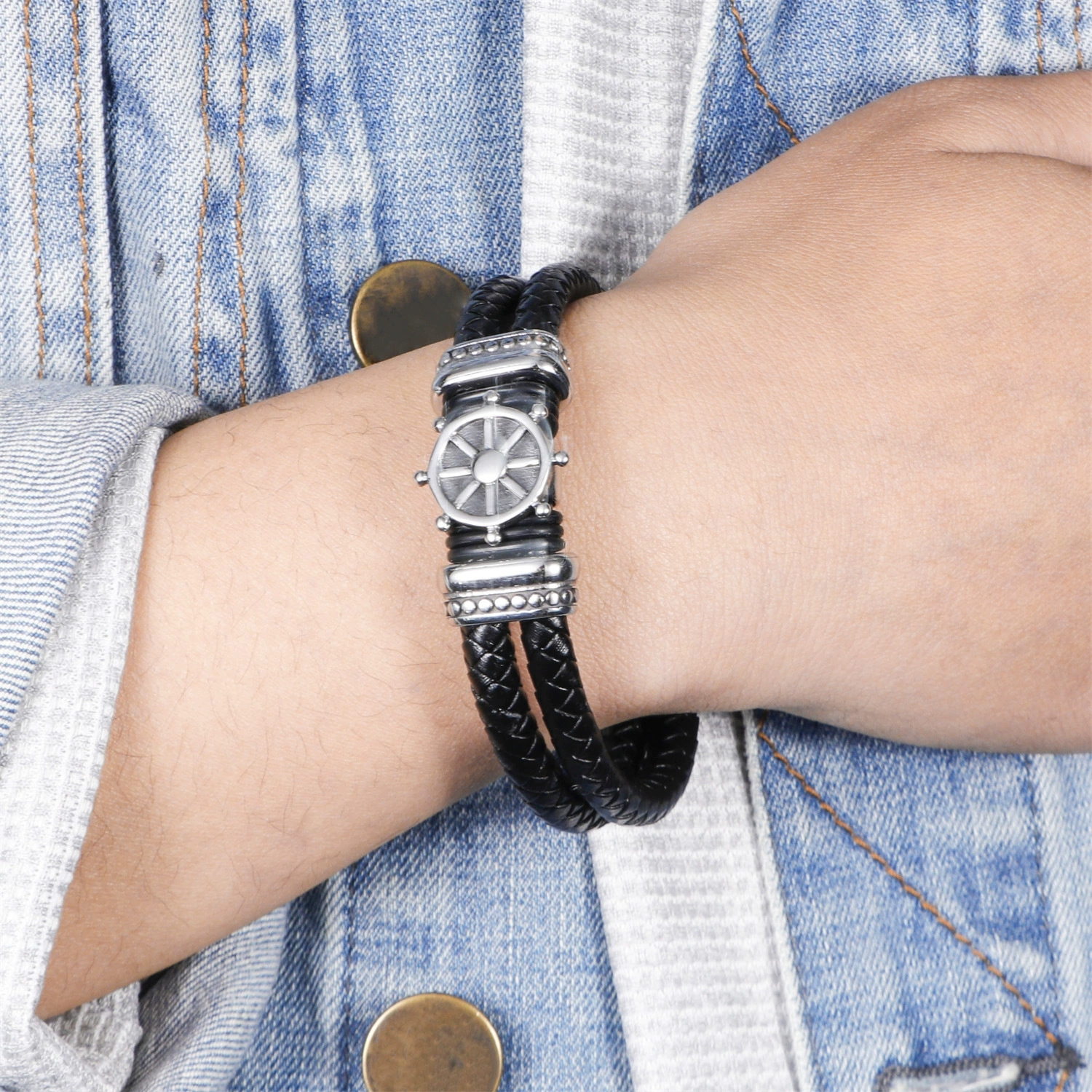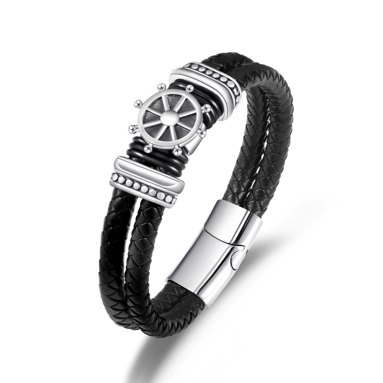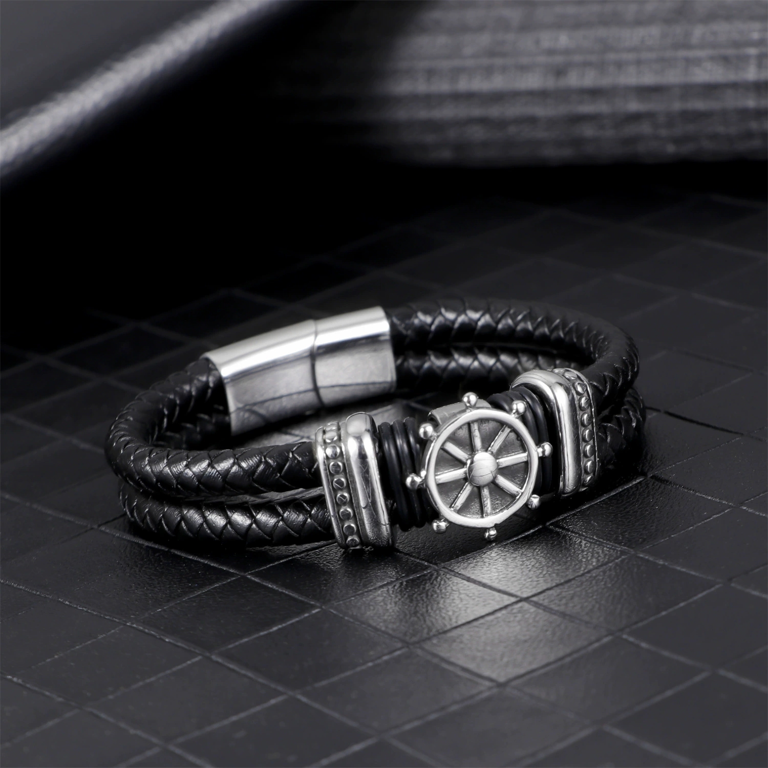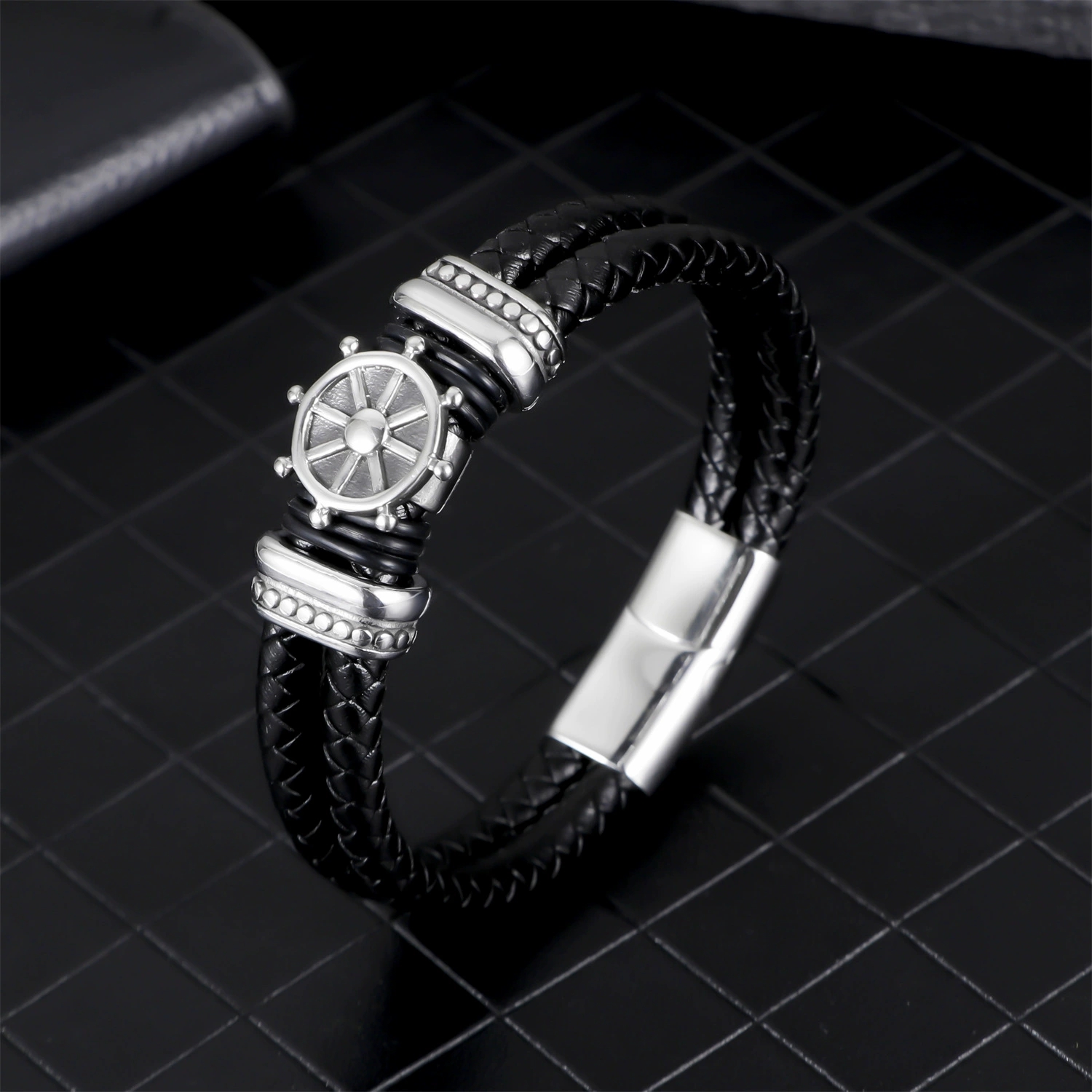 European and American Pop Pirate Leather Bracelet, Personalized Braided Leather Wristband with Stainless Steel Magnetic Clasp, Fashionable Leather Hand Jewelry for Men